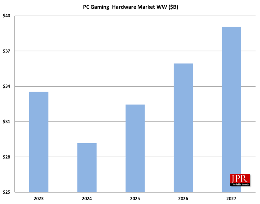 IT之家 9 月 28 日消息,市场调查机构 Jon Peddie Research 于 9 月 25 日发布博文,预估 2024 年全球 PC 游戏硬件市场将突破 300 亿美元(IT之家备注:当前约 2099.65 亿元人民币)。