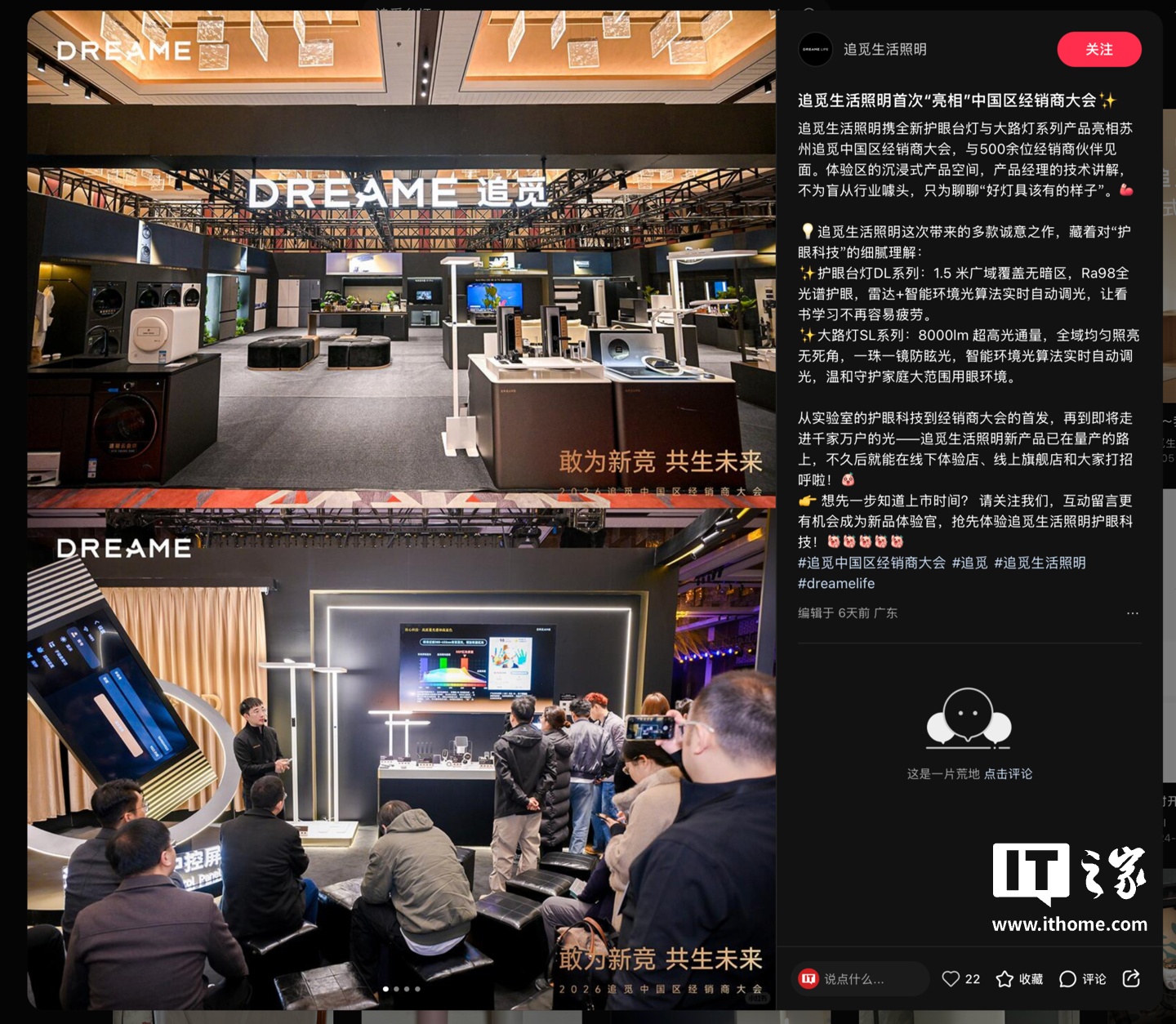 护眼台灯 DL 系列:1.5 米广域覆盖无暗区,Ra98 全光谱护眼,雷达 + 智能环境光算法实时自动调光。