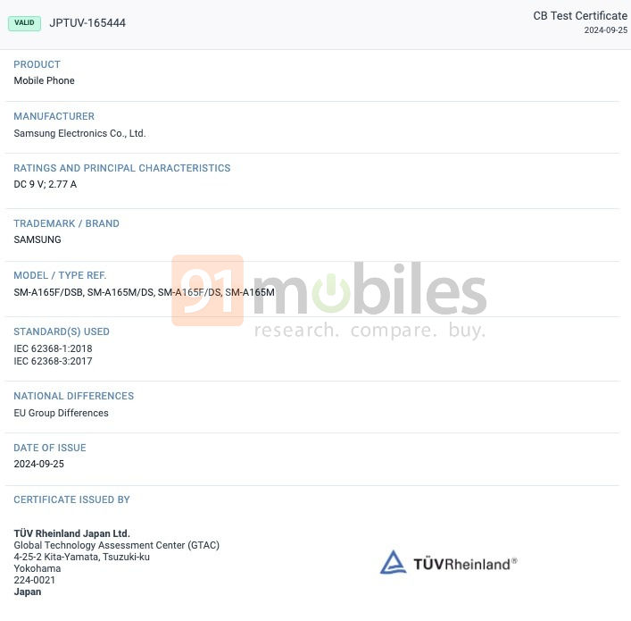 TUV 莱茵认证显示,三星 Galaxy A16 5G 的额定电池容量可能为 4860mAh,典型容量为 5000mAh,型号为 W3-S-S。