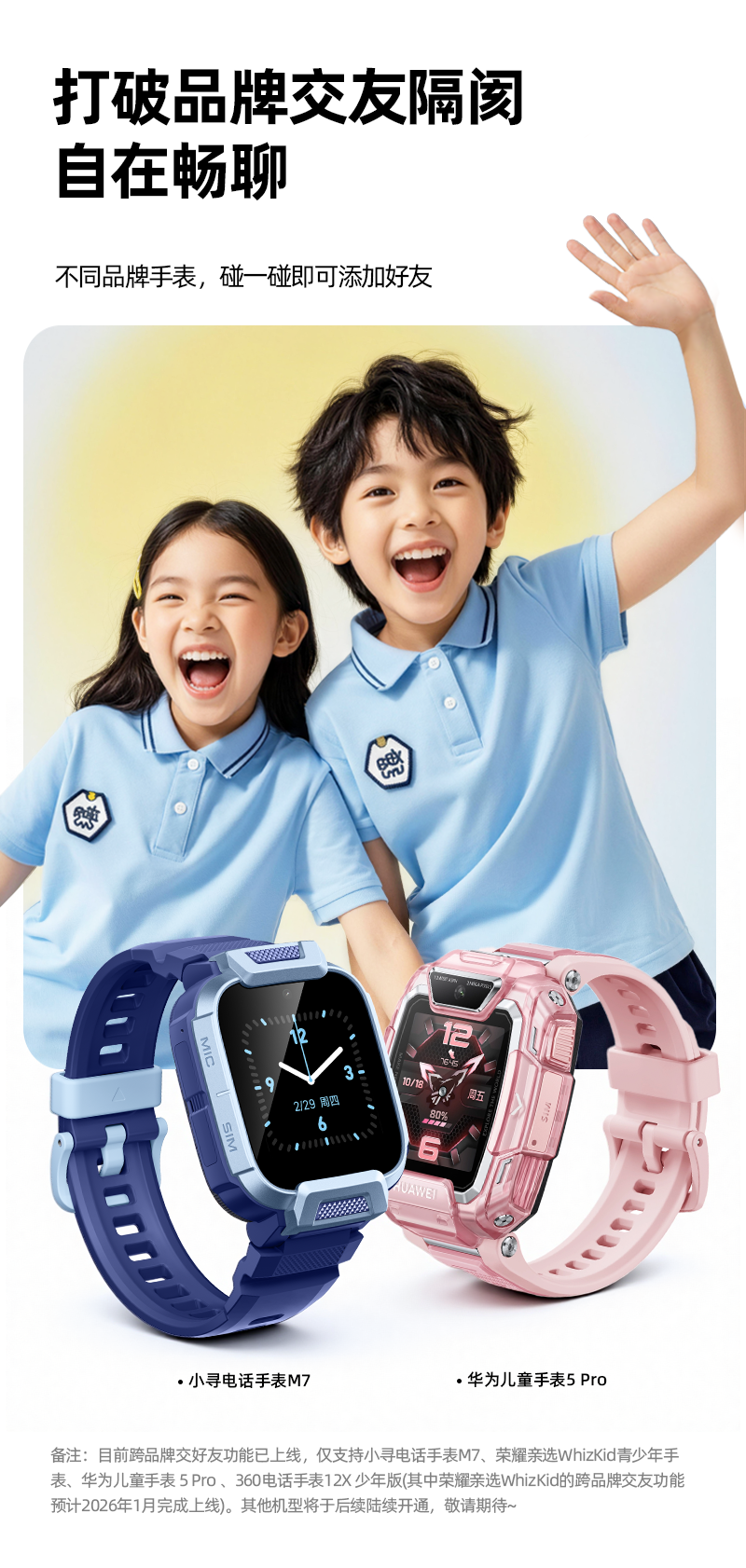 小寻实验室发文宣布,甄十科技深度参与了强制性国标《儿童手表安全技术要求》的起草工作,今年 12 月,华为与小寻正式启动“跨品牌交友”功能。首批支持跨品牌交友功能的机型为小寻儿童电话手表 M7、华为儿童电话手表 5 Pro,两个不同品牌的手表可通过“碰一碰”添加通讯录好友。