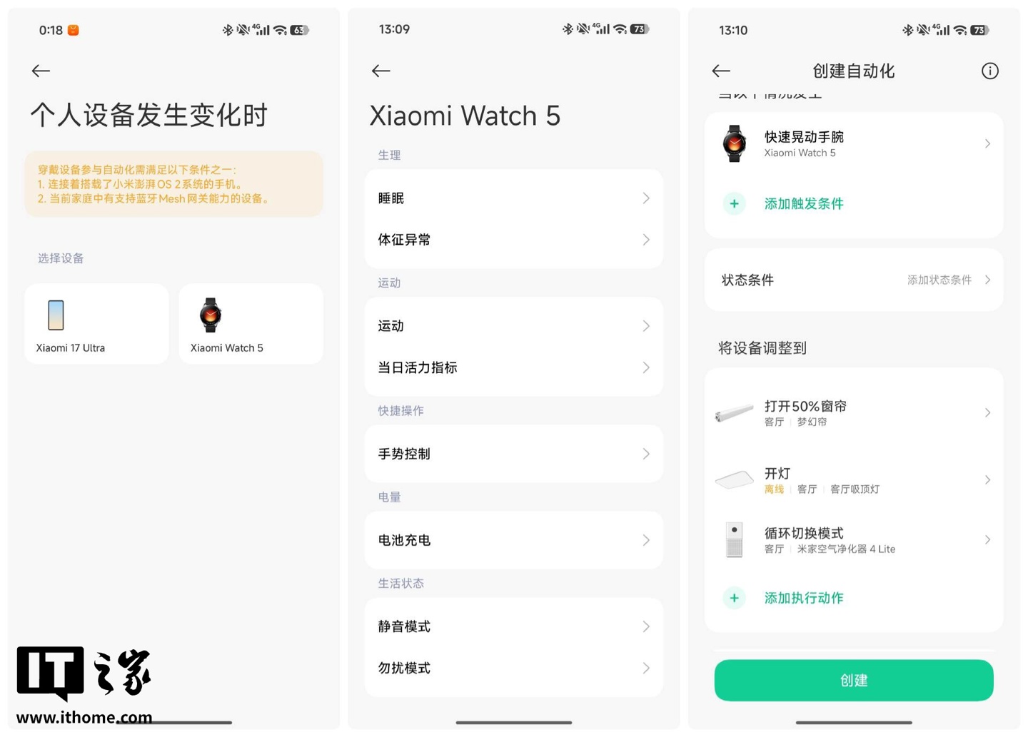 还有米家的生态联动,这也是笔者感到最惊艳的部分,通过米家自动化设置,你可以实现“打个响指,全屋开灯”或“关闭窗帘”。