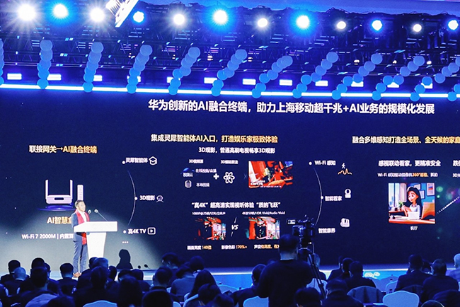 为此,上海移动携手华为联合推出面向AI时代的融合新终端——AI智慧盒。该产品深度融合FTTR、“灵犀”智能体、3D观影、双Vivid音视频标准、 多维感知等智慧家庭核心功能,旨在通过“新终端、新业务、新宽带、新体验”打造超千兆智慧家庭价值新模式。