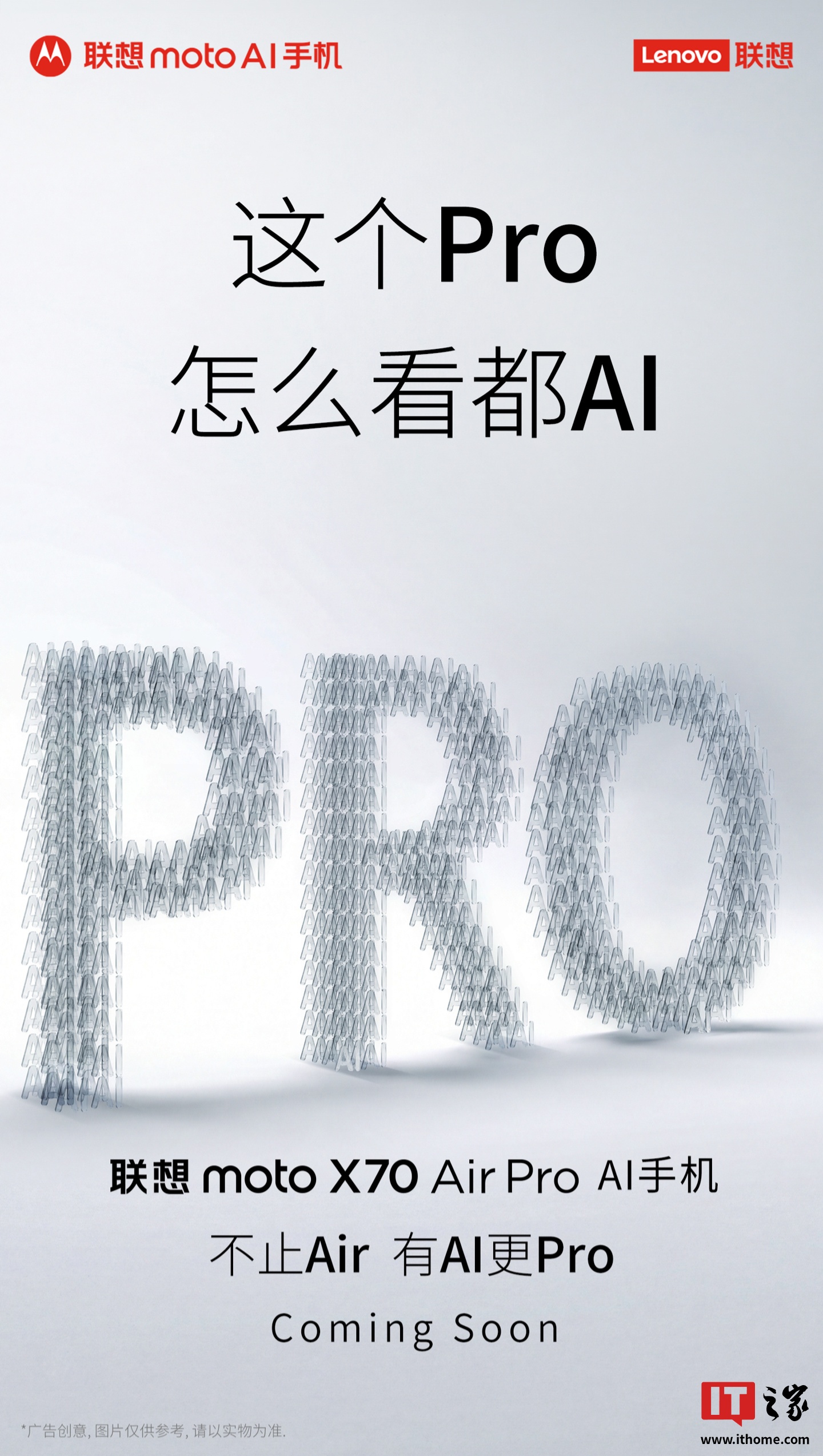 IT之家 12 月 30 日消息,联想 moto 官方今日对 moto X70 Air Pro AI 手机进行预热,宣称“让影像,从此拥有思考”。