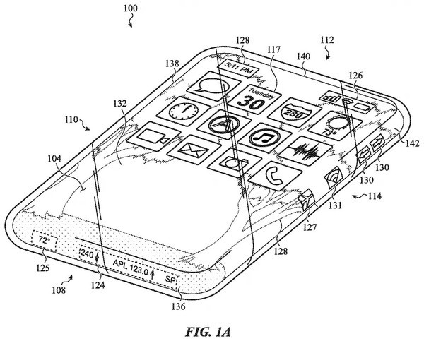 从相关专利信息来看,iPhone 20可能由上下两块玻璃组成,正面屏幕玻璃呈弧形覆盖主板等核心部件,并与背板玻璃通过机械结构紧密连接,力求实现“无缝”视觉效果。为增强一体玻璃机身的强度,机身四个边角将采用更厚的玻璃材料,传统金属边框或将被玻璃替代。