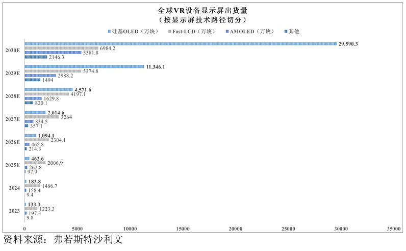 这种爆发并非偶然,而是源于XR领域对显示技术的刚性需求——相较于传统Fast LCD屏幕分辨率低、功耗高、体积大的缺陷,硅基OLED的性能优势在虚拟现实场景中尤为突出,被行业公认为最适合虚拟现实的显示技术。