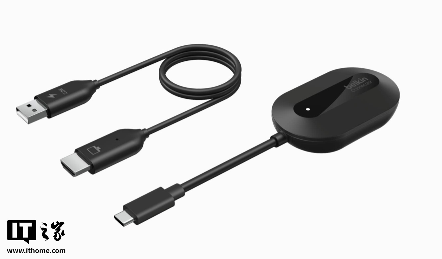 IT之家 1 月 5 日消息,贝尔金(Belkin)在 CES 2026 上发布了一款即插即用无线投屏器“Connect Air Wireless”,可在无需 Wi-Fi 或蓝牙连接的情况下,令笔记本电脑、手机平板无线共享屏幕内容,定价为 150 美元(IT之家注:现汇率约合 1051 元人民币)。