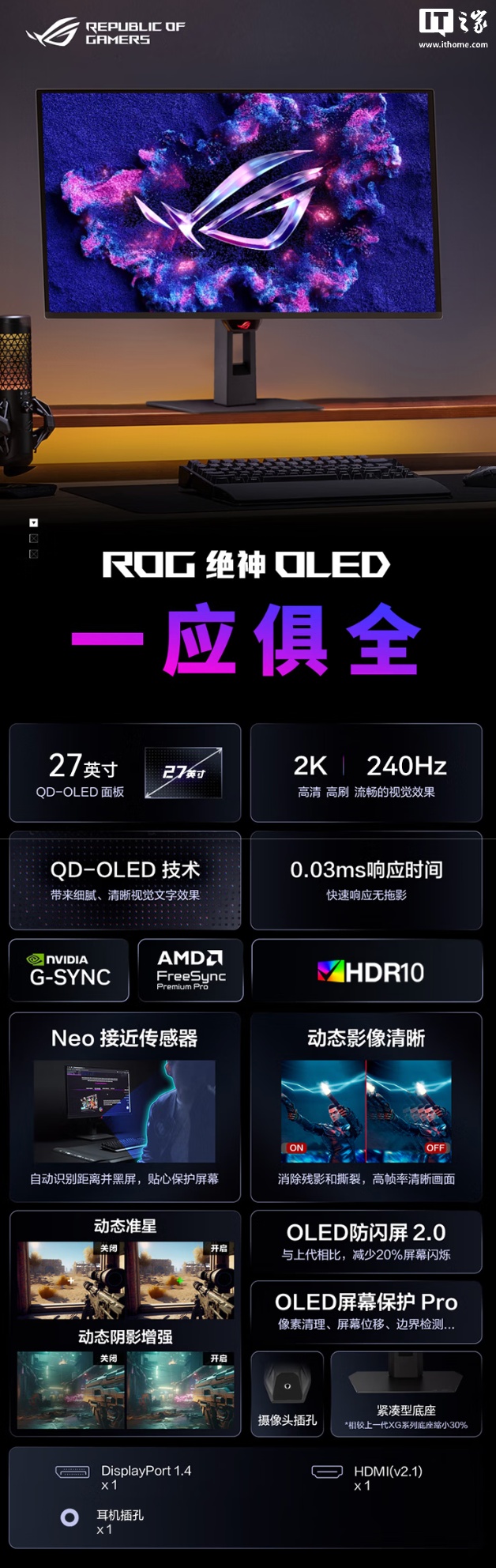 IT之家 1 月 5 日消息,华硕 ROG 现已在京东上架型号为“XG27AQDMES”的 27 英寸显示器,该产品主打 2K 240Hz,定价为 2999 元。
