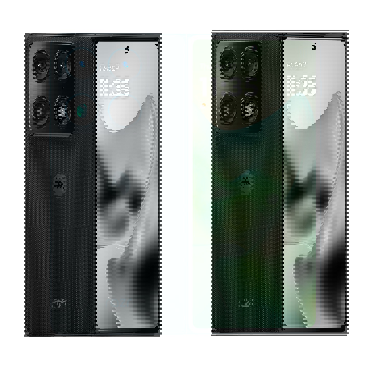 曝光的 Moto Razr Fold 采用了横向折叠设计,整体外观延续了 Moto Edge 系列的风格。图片显示,该机身设计纤薄,黑色版本背板采用了碳纤维纹理,白色版本则更为简洁。