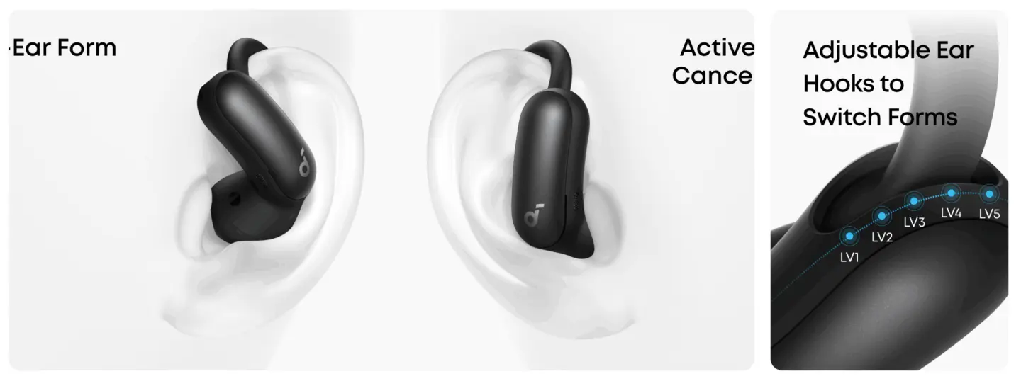 这款产品最大的亮点在于其独创的物理调节结构,用户可手动调整耳塞位置:既能悬停在耳道外以保持对环境的感知(开放式模式),也能深入耳道以形成密封空间(沉浸式模式)。