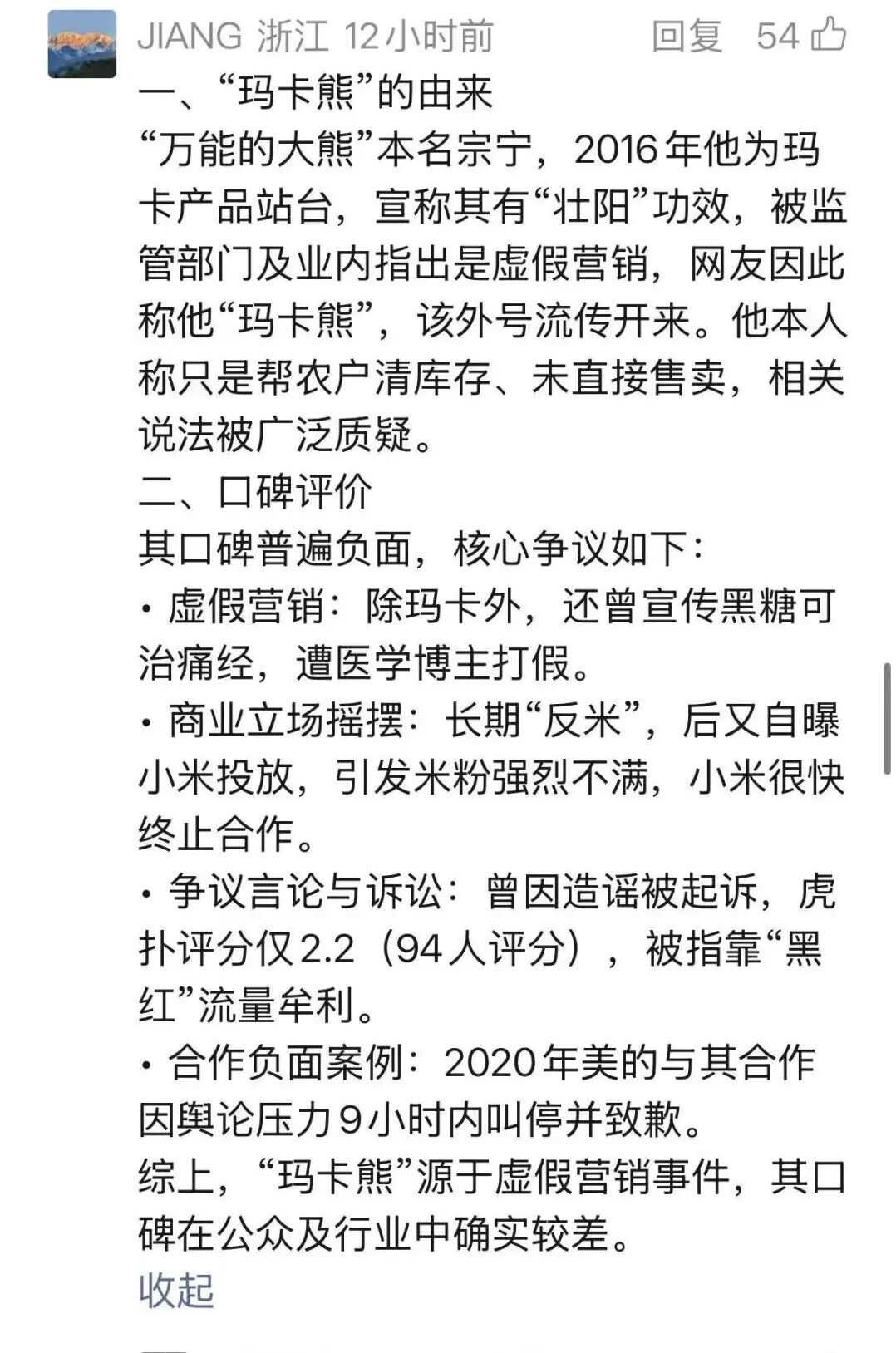 尽管他辩解是“帮农户清库存”(你信吗?),但“玛卡熊”的名号就此钉在耻辱柱上。