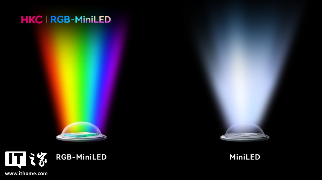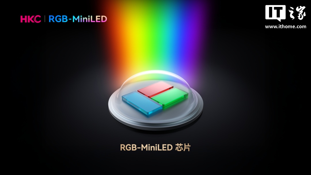 该电视采用 HKC 全新自主研发的 RGB 背光技术,内置 9216 颗 RGB 倒装 Mini LED 灯珠,相较传统 Mini LED 背光实现了更精细的 2304×3 分区设计,不同分区配合每颗灯珠内 R、G、B 灯芯的独立芯片控制,让背光控制精准到像素级。