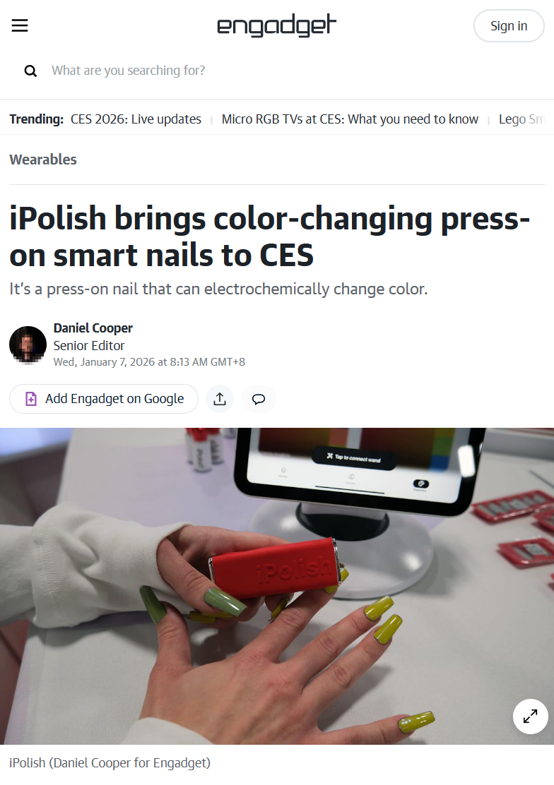 IT之家 1 月 7 日消息,在今年的 CES 2026 展会上,iPolish 电动美甲器正式亮相。