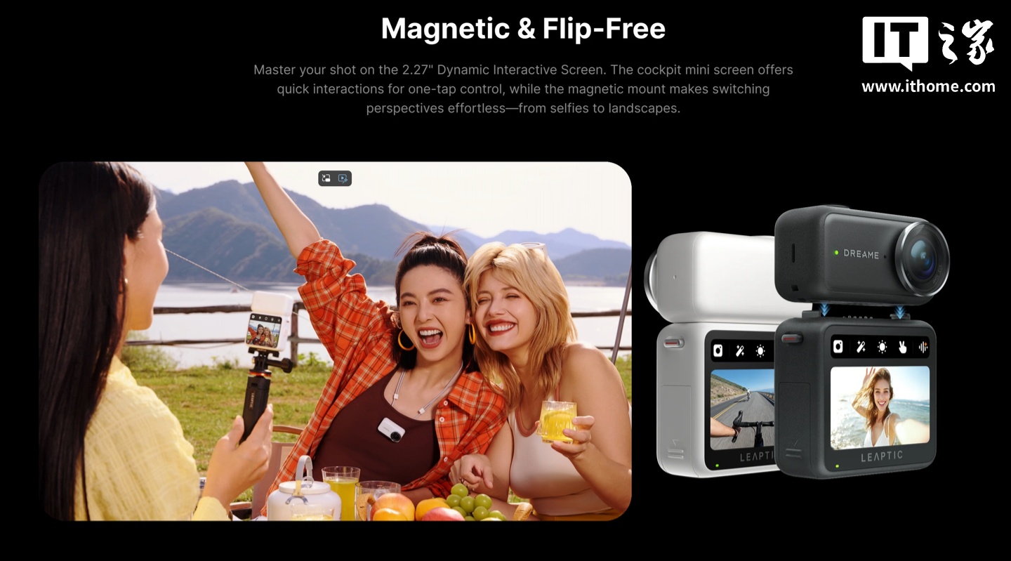 IT之家 1 月 7 日消息,追觅进军运动相机领域,在海外市场推出旗下首款产品 Leaptic Cube,设计与大疆 Osmo Nano 类似,采用分体式设计,相机本体可以与屏幕分离,方便远程拍摄、POV(第一人称)拍摄等场景。