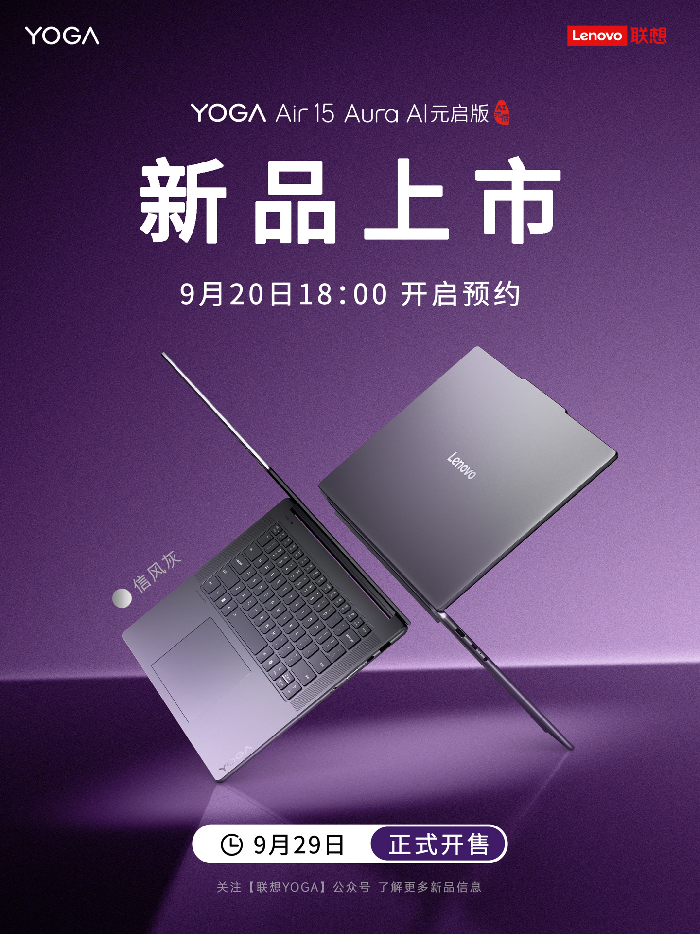 IT之家 9 月 29 日消息,联想 YOGA Air 15 Aura AI 元启版笔记本今日正式发布,定价 9999 元,今日(9 月 29 日)15:30 开售。