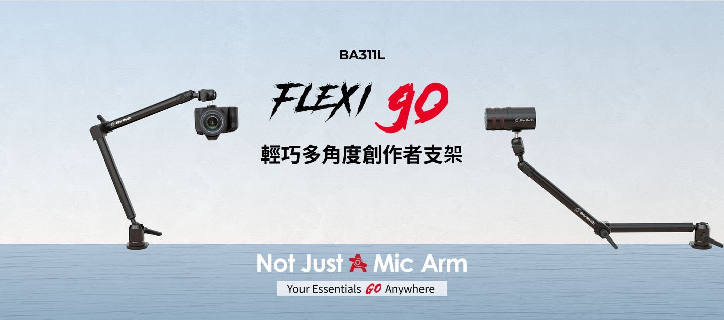 而 FLEXI go 铝合金支架则采用三段式设计:顶部接头支持水平 360° 旋转和垂直 180° 倾斜、中段关节可 360° 垂直倾斜、底部关节可以 180° 倾斜和 360° 旋转,方便用户找到设备最佳定位。