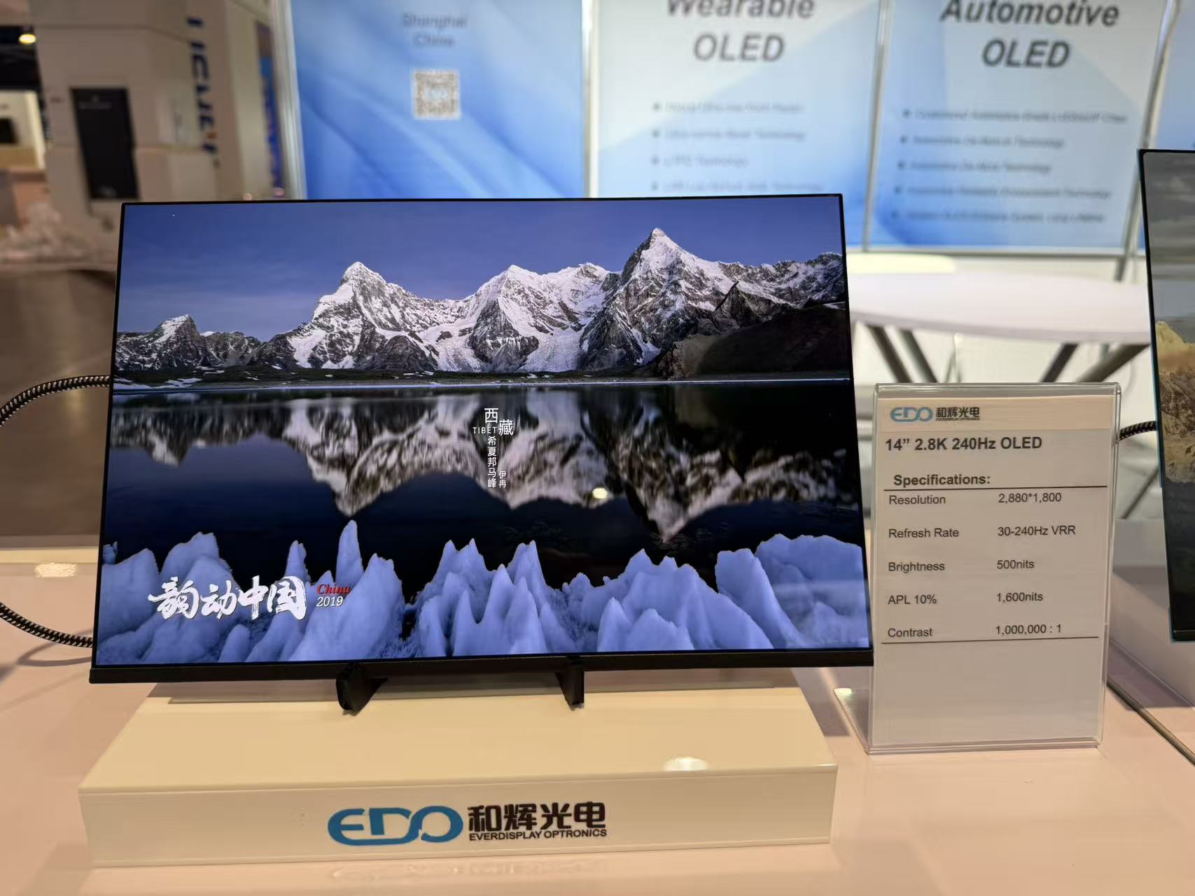 在专用于笔记本电脑的产品上,和辉光电展出了两颗支持 30~240Hz VRR 可变刷新率的面板,分别为 14 英寸 2.8K 和 15.3 英寸 2.5K 规格,在带来流畅游戏体验的同时也兼顾能效表现。