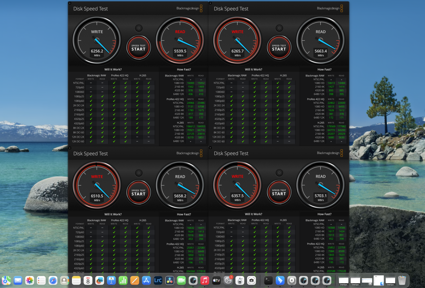 该型号同时拥有多个高速雷电 5 接口,在同时连接时可让四块 SSD 都实现 6000+ MB/s 的顺序写入速率。其每个盘位均支持至少 8TB 单盘,机身外部为金属格栅散热鳍片,非常适合 8K 视频外接剪辑等同时需要高速率与大容量的场景。