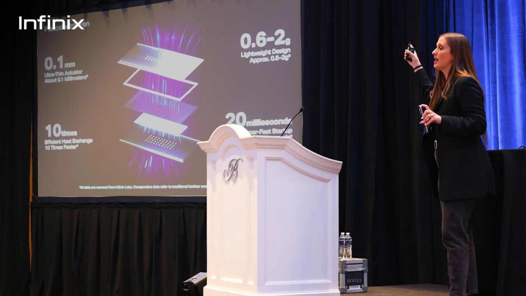 近日,一年一度的 CES(Consumer Electronics Show)在美国拉斯维加斯盛大启幕。作为全球规模大、影响力最广的科技盛会之一,全球新兴市场的智能终端厂商传音(Transsion)旗下Infinix品牌正式发布了行业首创的压电散热架构二合一技术,其中的压电风扇技术由锐盟半导体共同研发,这也是压电风扇技术首次在智能手机上的应用案例。