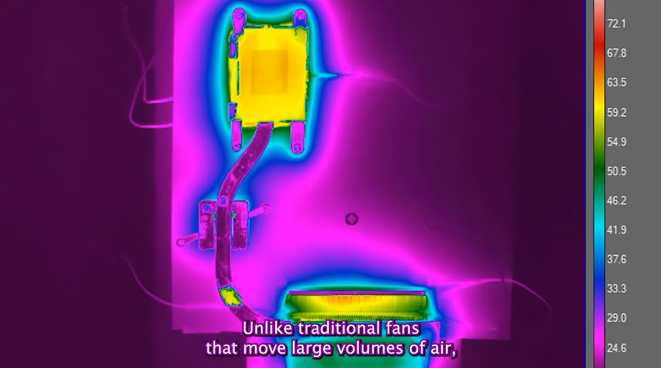 如图所示,这套散热系统的核心部件不是一个方方正正的风扇,而是一层薄膜,其厚度仅为200微米,也就是0.2毫米。