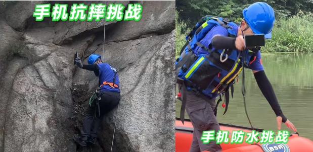 而在此前,王腾还加入了蓝天救援队的一日训练,在3米高的山崖处将手机扔下去,在水深近3米的湖中进行防水测试。可以说是变着花样的“狂虐”Note 14,而同样在“折磨”手机的还有OPPO。