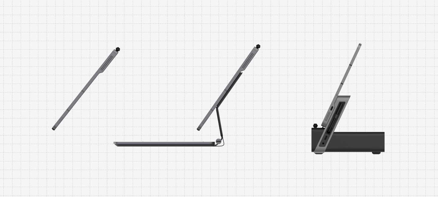 Mind Go 的本体是一款无风扇散热平板电脑,配备扬声器和前摄,支持 Mind Pencil 手写笔。其 11.6 英寸 LCD 原型机重约 600g,厚度约为 6.1mm;而换用 OLED 面板有望将厚度降低至约 5.5mm 并进一步减轻重量。