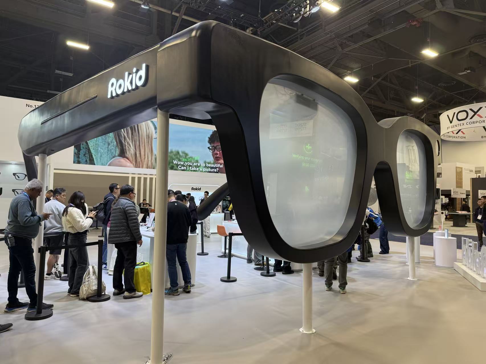 在手机、PC、汽车之外,各种智能可穿戴设备被推到了更靠前的位置。AI+AR眼镜、同时也是可显示AI眼镜的标杆Rokid,这次的展台就跟海信、TCL们挤在一起,而且从规格看已到同一个LEVEL,这颇有一种AI眼镜能跟智能家电们“同桌吃饭”的既视感。