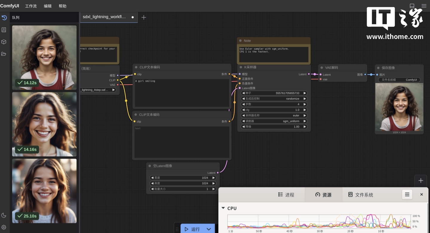 除了官方内置的模型,在 MTT AIBOOK 的 ComfyUI 中,同样可以自己下载模型和工作流进行部署,IT之家这里尝试了字节的 SDXL-Lighting 文生图大模型。