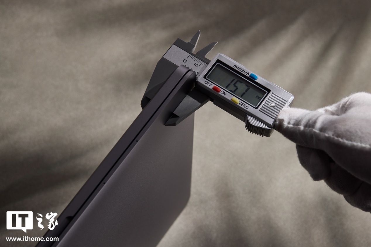 IT之家的实测重量 1.42kg,比官方数据更轻。AIBOOK A 面极为简约,只有一个银色亮面摩尔线程 Logo,由于采用了镭雕工艺处理,因此在不同角度下会呈现出不同的颜色,从远处看会有种它的 Logo 支持 RGB 灯光的错觉。