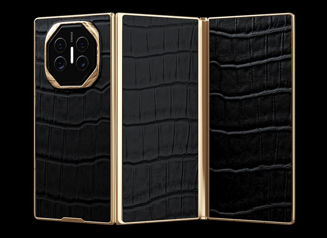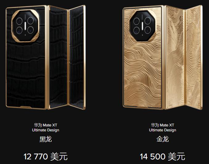 就这两天,Caviar 官网发布定制版华为 Mate XT 非凡大师三折叠手机,提供黑色、金色两种款式。