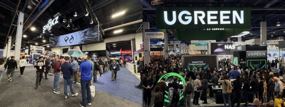 最后,韶音和绿联这类的海外用户颇为喜欢的潮流品类品牌,每年在 CES 的展台,人气都不会低,今年也不例外。CES 2026,韶音的展位就在拉斯维加斯会议中心中厅「四大金刚」LG 展区的一侧,每次路过 LG 展区时,小雷就能看到这家品牌的招牌。另一家绿联,展台位置较好,人流同样不低。