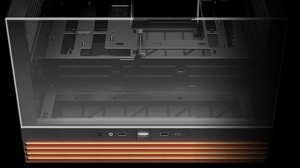 Light Base 600900 机箱均配备纵向贯穿机箱前面板的大尺寸多列 ARGB 灯带,支持背插主板,可轻松在标准、倒置和水平三种模式间切换,并集成了无论显卡水平或垂直安装均可防止其下坠的灵活支架。