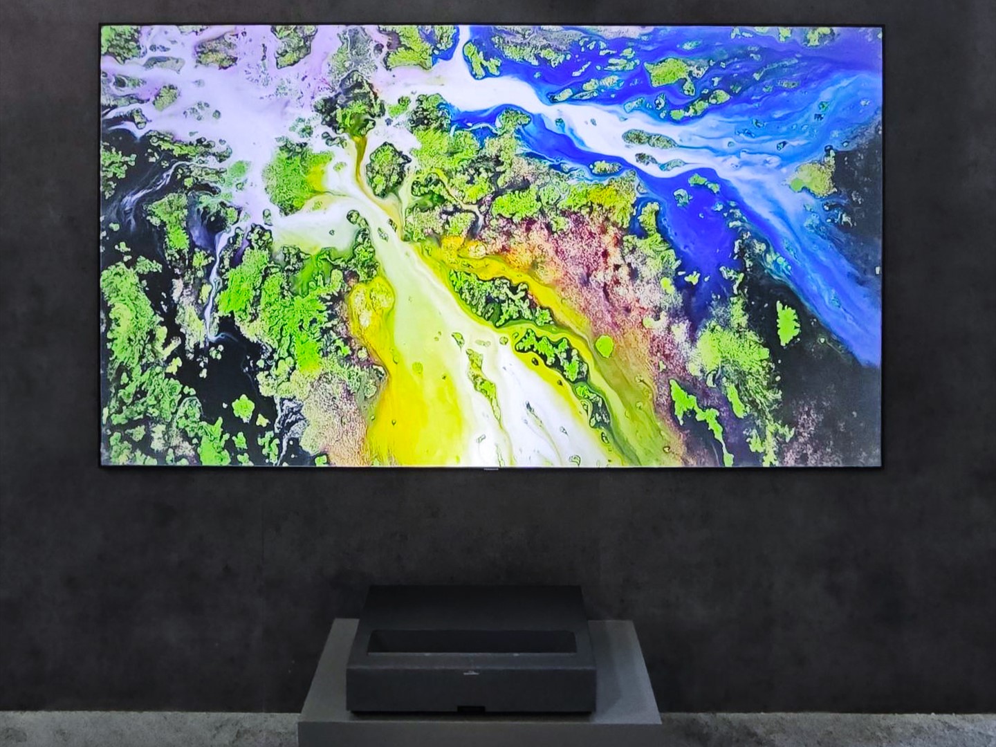 峰米此次也展出了基于股东光峰科技的 ALPD 三色激光技术的 Formovie Theater Premium 激光电视。这一技术方案在散斑控制、彩虹效应抑制、色彩还原上具备优势,FOFO 对比度可达 3000:1,独家配备宝华韦健音响,支持杜比全景声和 DTS-X。