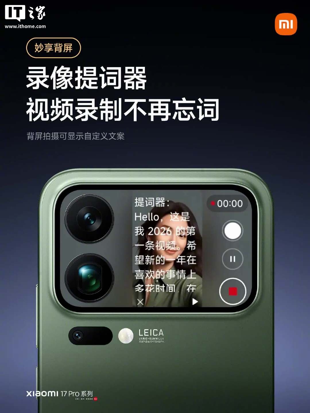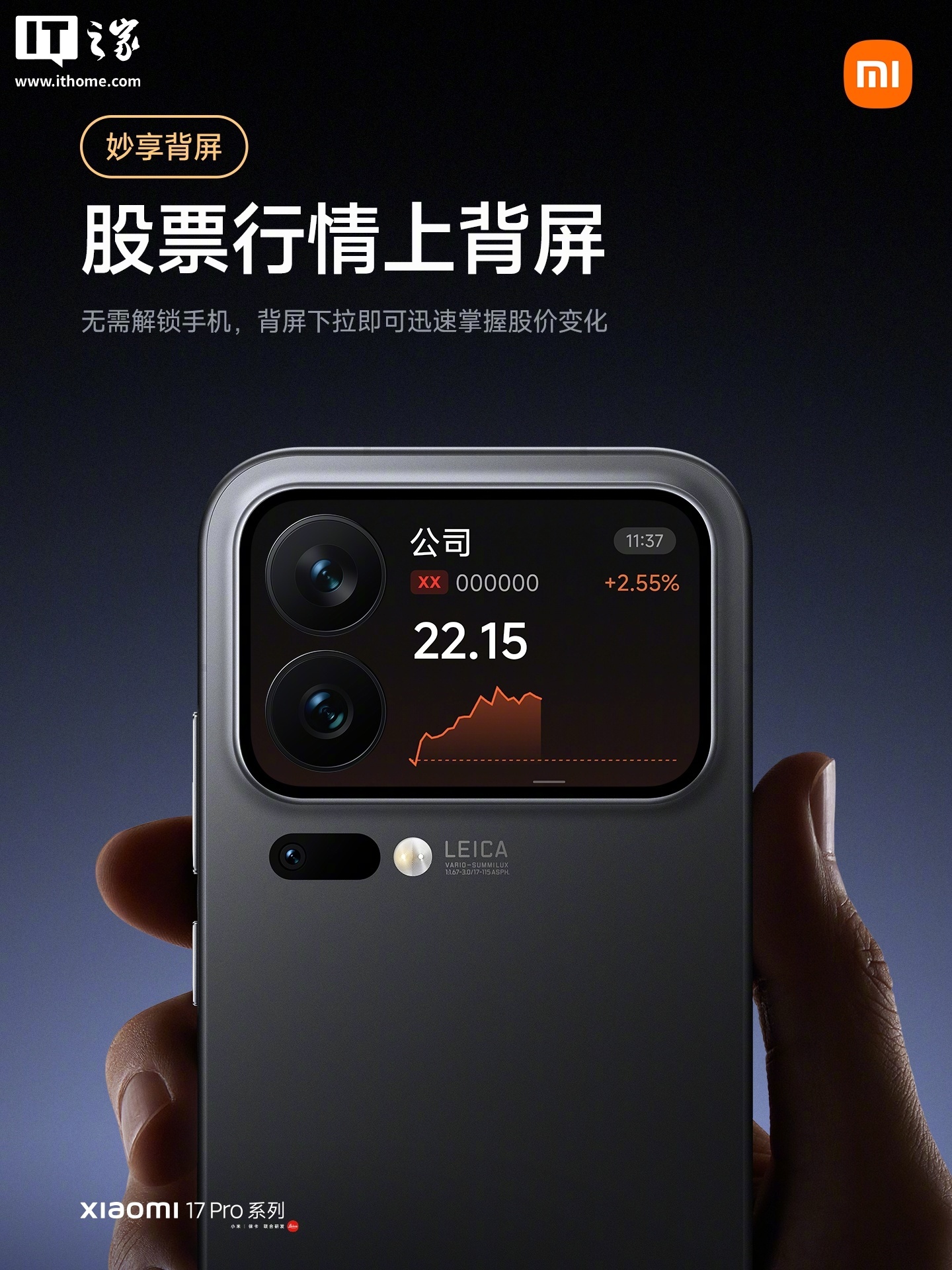 另外,小米 17 Pro 系列手机的背屏还新增支持了背屏录像提词器、背屏股票行情等功能。