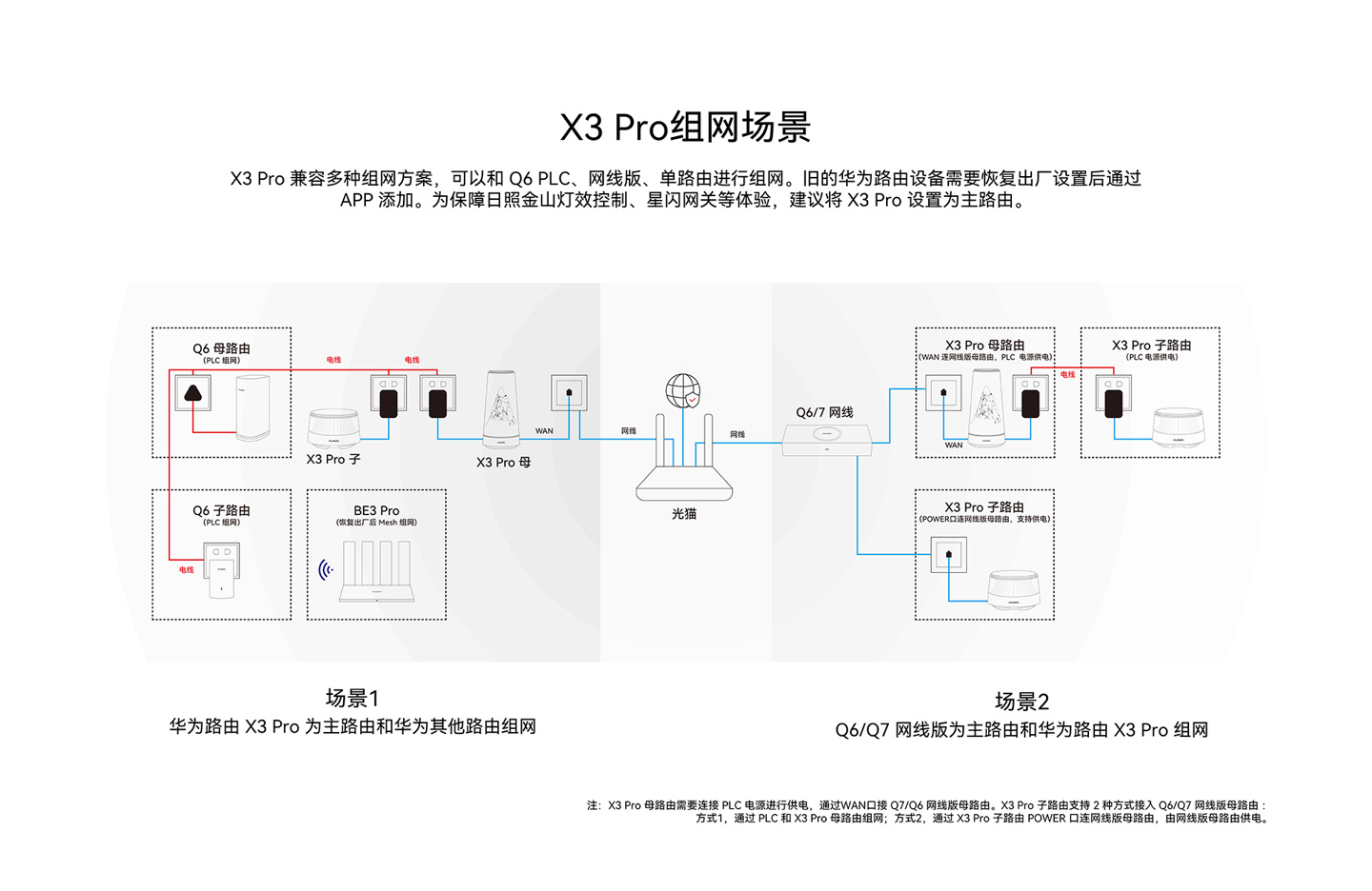 另外,该路由采用华为第三代 PLC 技术,搭载全新凌霄 PLC 芯片,利用电线传输信号,子路由房内插上电,即可实现自动组网,无需布线。