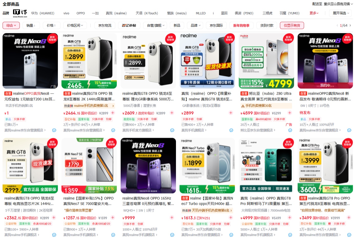 IT之家注意到,自 realme 真我官宣回归后,目前其在京东、淘宝、抖音直播间等平台的在售产品已添加 OPPO 前缀 / 关键词。