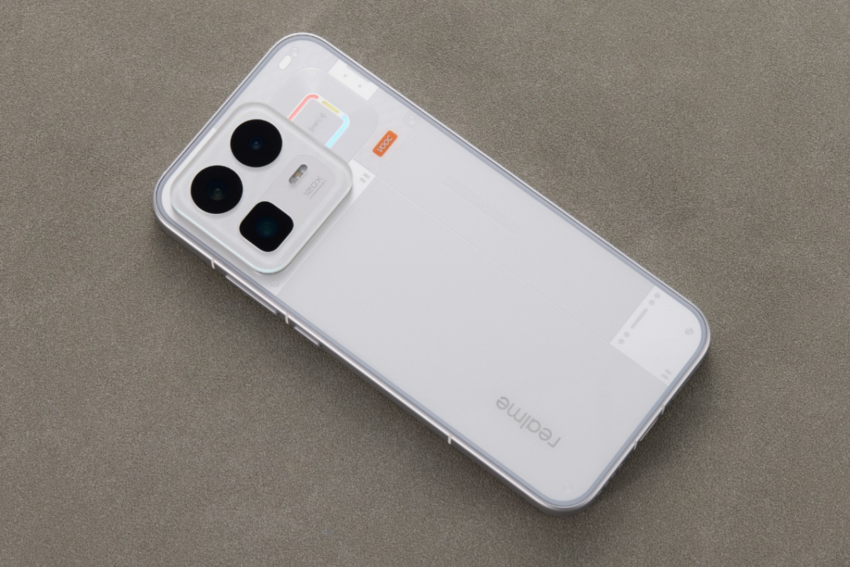 真我Neo8 这次的外观风格承袭了 Neo 系列近几代的“透明新生设计”,视觉上全面进化。后壳采用透明玻璃 + 机械浮雕设计,边缘还有一圈跑道边框,将机械美学风格展现得淋漓尽致。