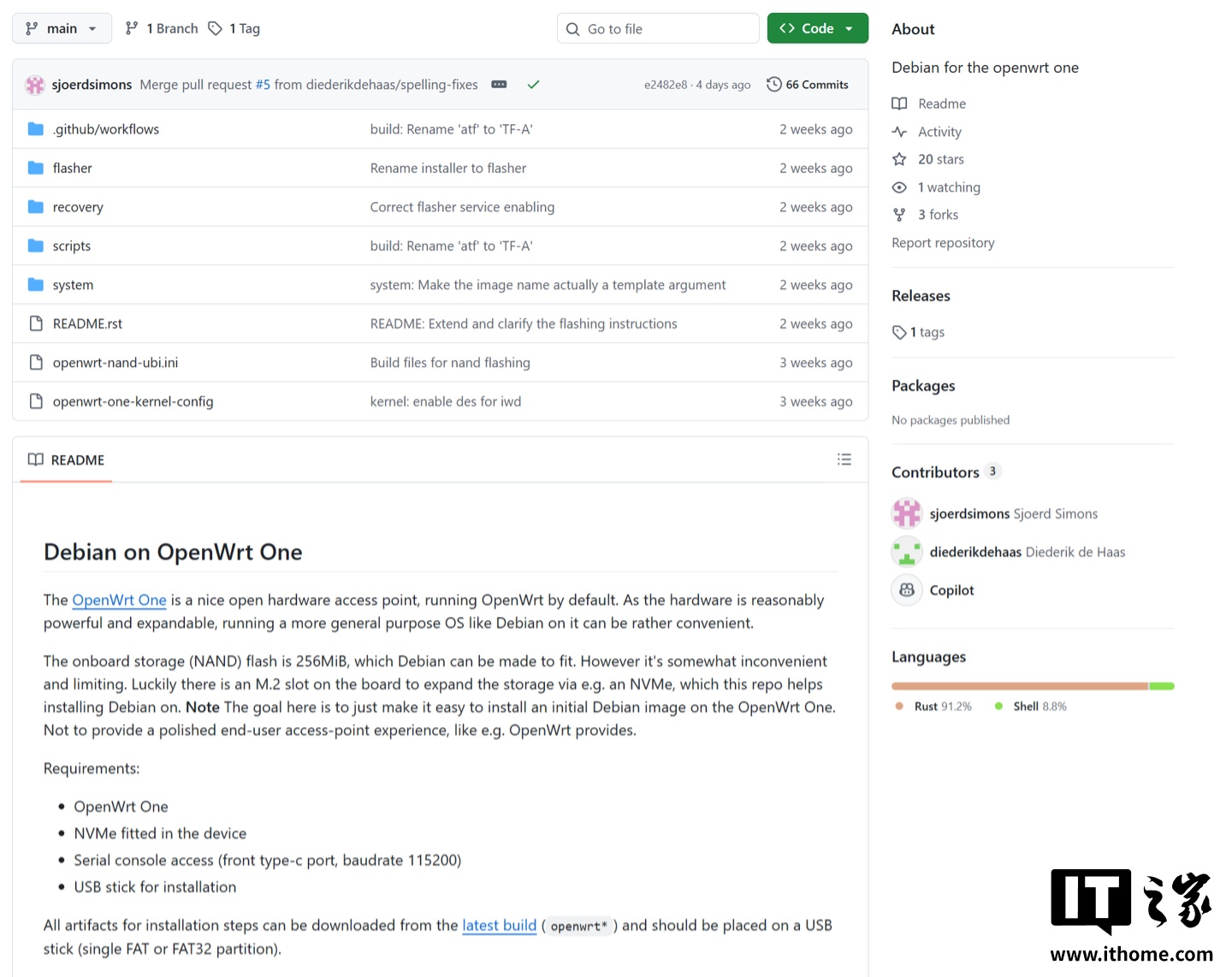 该项目提供一个基于 Rust 的刷机工具,支持使用机内的 NVMe 2042 硬盘插槽扩展存储空间,OpenWrt One 路由器安装这个系统之后几乎可以变身一台紧凑型的通用 Linux 计算机。