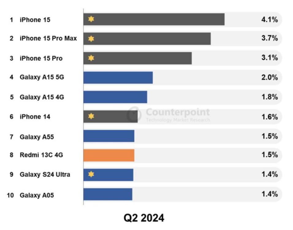 而在8月份全球手机市场中,苹果公司时隔3年(2021年8月以来)首度被中国品牌小米超越,跌至全球第三大手机品牌。