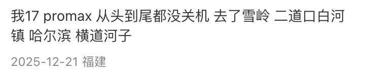 “去趟东北,为手机买了三十个暖宝宝、二十个手机贴,又都背回家了,最冷的漠河都没用上,手机没有关机过,电量也都OK。”