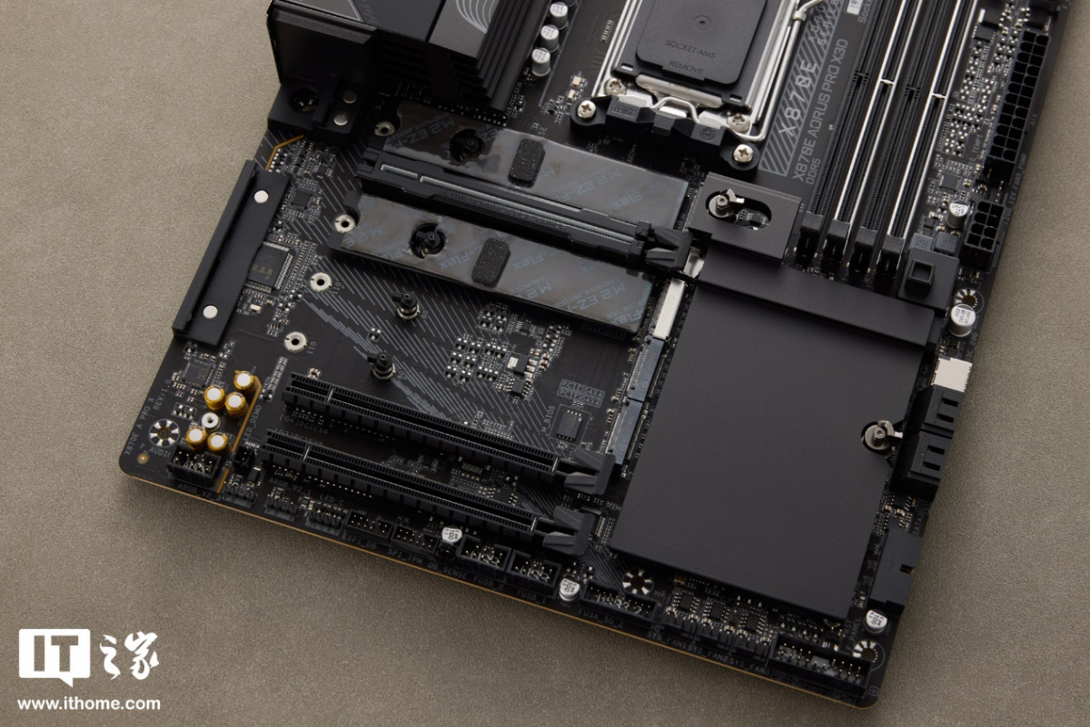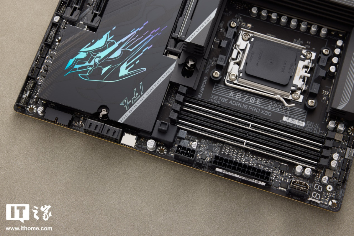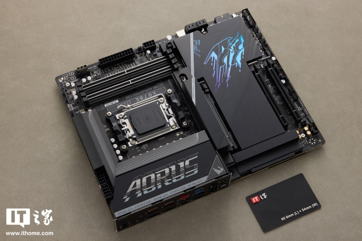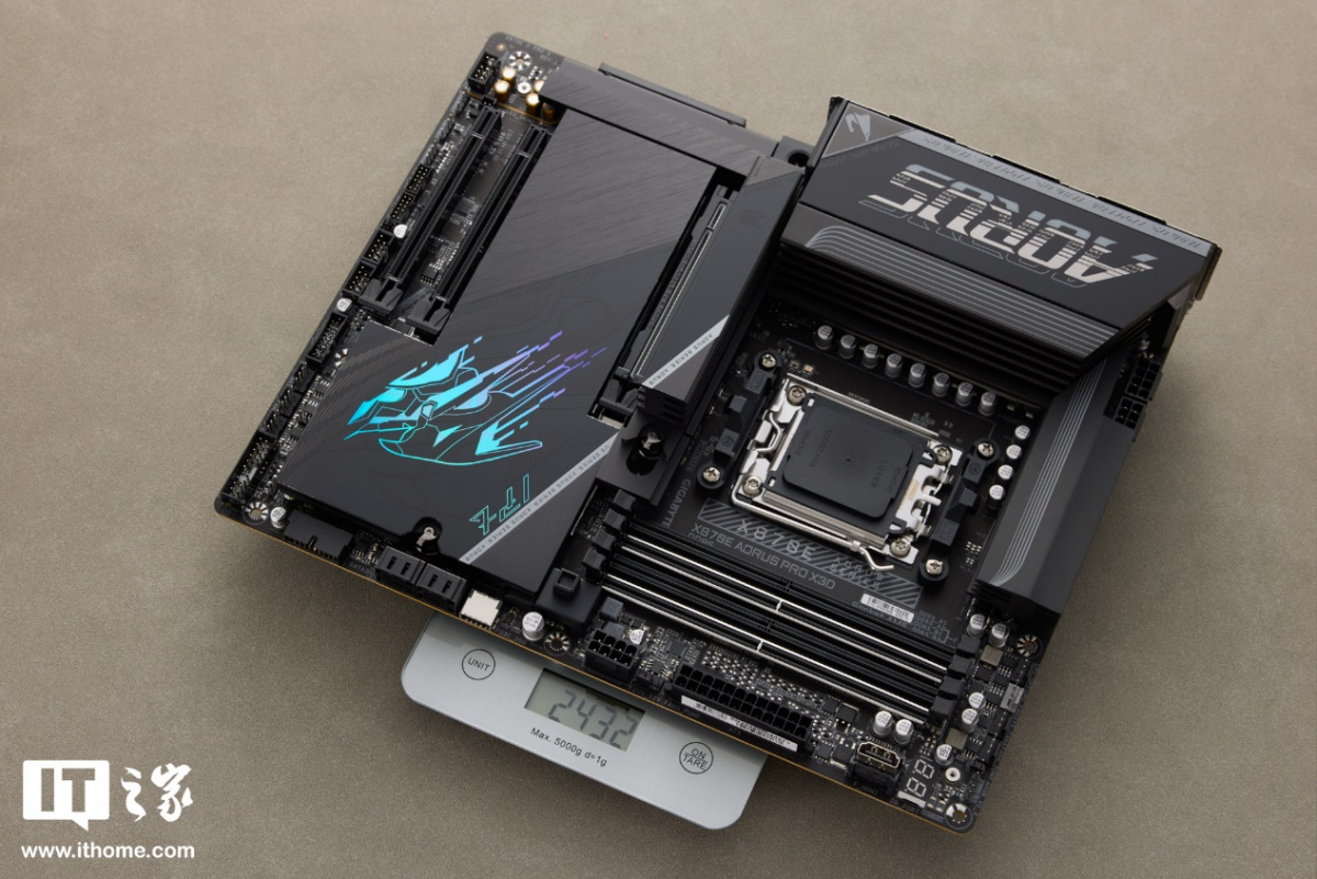 尺寸方面,技嘉 X870E X3D 电竞雕主板是标准的 ATX 大板,长宽为 28.2*29.5cm,重量约 2.43kg。