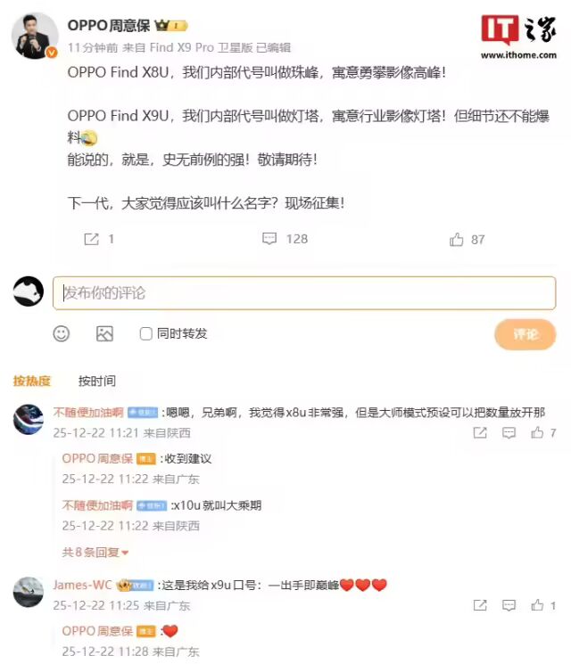 咱们先来看看 Find X9 Ultra,OPPO 对其影像实力很有信心,据 Find 系列产品负责人周意保此前透露,该机内部代号叫做灯塔,寓意行业影像灯塔,并放话“史无前例的强”。