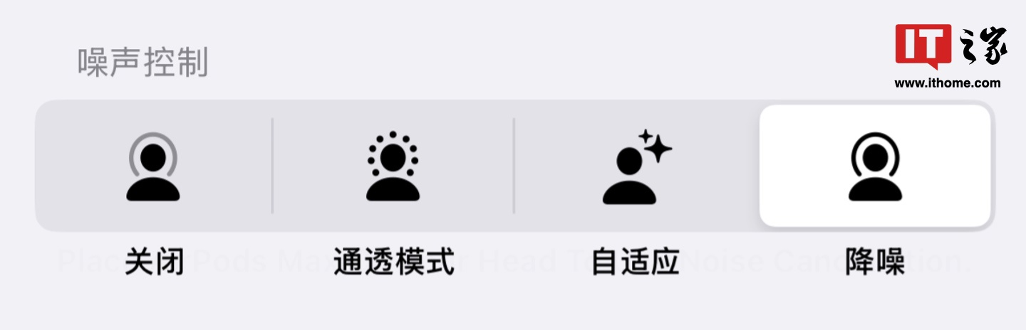 与 AirPods Pro 2 一样,AirPods 4 也提供了“降噪”、“自适应”、“通透模式”与“关闭”四种噪声控制模式。