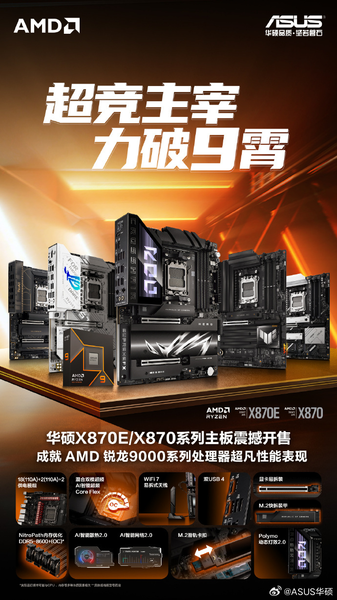 IT之家 9 月 30 日消息,AMD X870E、X870 系列主板首发型号于 21:00 正式解禁,华硕、华擎、微星、技嘉四大板厂的相关产品现已正式开售。