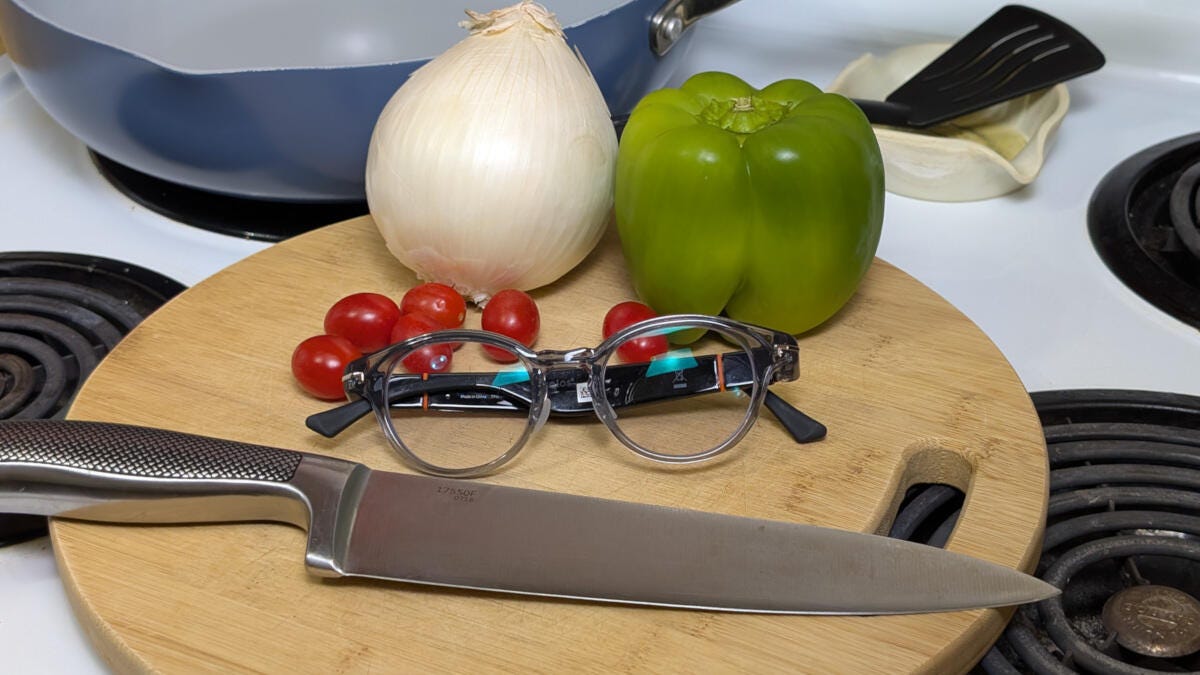 遗憾的是,Solos的处方度数让我左眼感到不适,因此我无法在电脑前工作时佩戴这副眼镜。不过,幸运的是,在烹饪时这种差异并未造成问题。John Carlsen/CNET