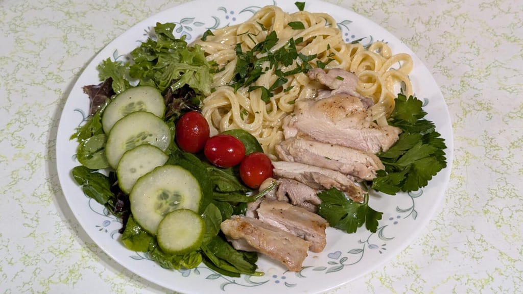 我从贝蒂·克罗克(Betty Crocker)的《新娘版烹饪书》中选择了一个简单的阿尔弗雷多酱食谱,我每个月至少制作一次。智能眼镜不仅准确地捕捉到了所有的食材和步骤,还帮助我同时管理了三道菜以完成一餐。例如,我先开始制作酱汁,然后再做鸡大腿和一份简单的配菜沙拉。