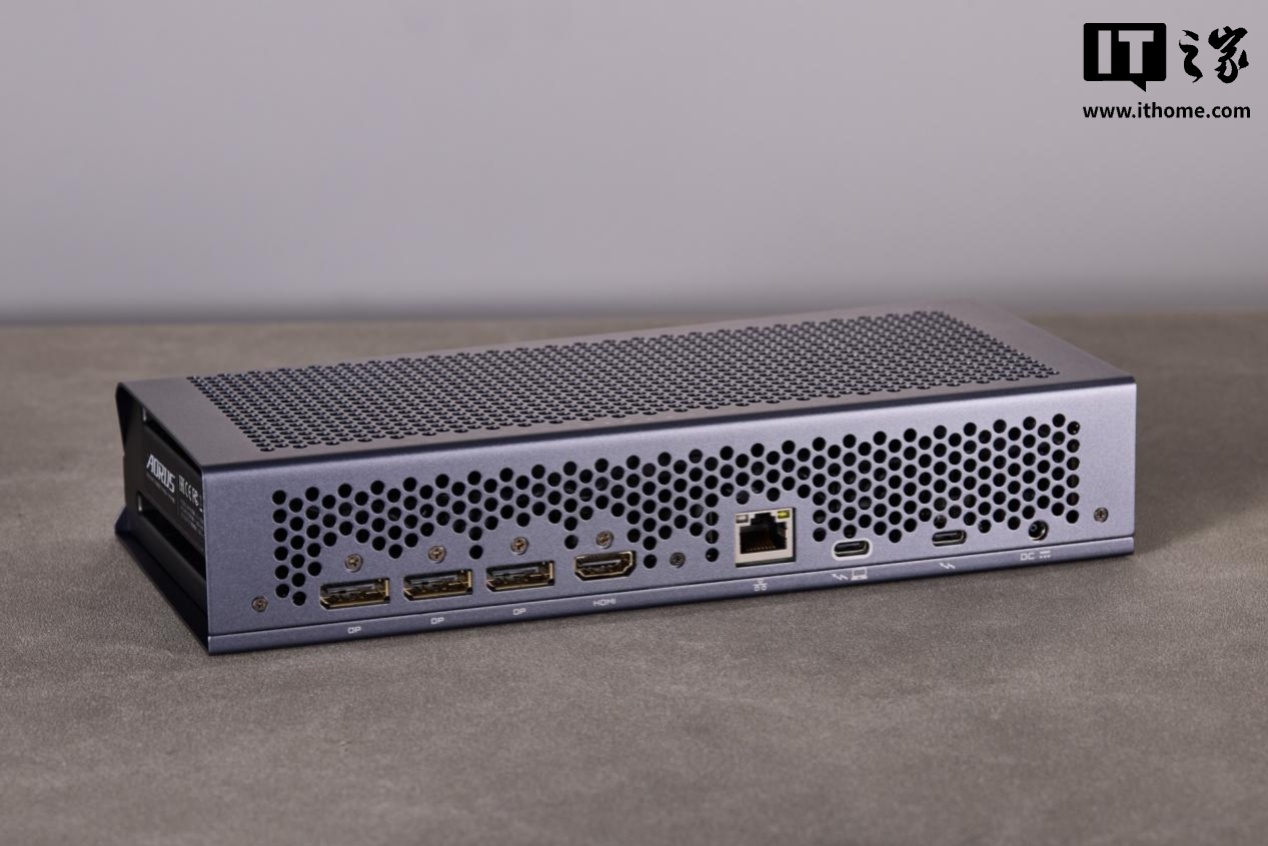 虽说体积小巧,但技嘉 AORUS RTX 5060 Ti AI BOX 内置的还是桌面端显卡,其基于最新一代 GB206-300 核心和 TSMC 4N 制程工艺打造,CUDA 核心数量为 4608 个,相比前代 RTX 4060 Ti 的 4352 个 CUDA 核心提升 5.88%。另外,还包括 144 个第五代 Tensor Cores、36 个第四代 RT Cores。另外,其配备 16GB 显存,在开启 DLSS 玩游戏时基本不会爆显存,要明显好于 8GB 版的 RTX 5060 Ti 。该显卡的大致性能定位,请前往IT之家 App - 发现频道的显卡天梯图予以查看。