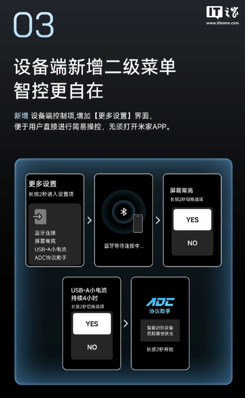 IT之家 1 月 21 日消息,酷态科宣布旗下 10 号充电器迎来 1 月 OTA 升级,主要新增 ADC 协议助手、AI 智能模式、设备端二级菜单等。