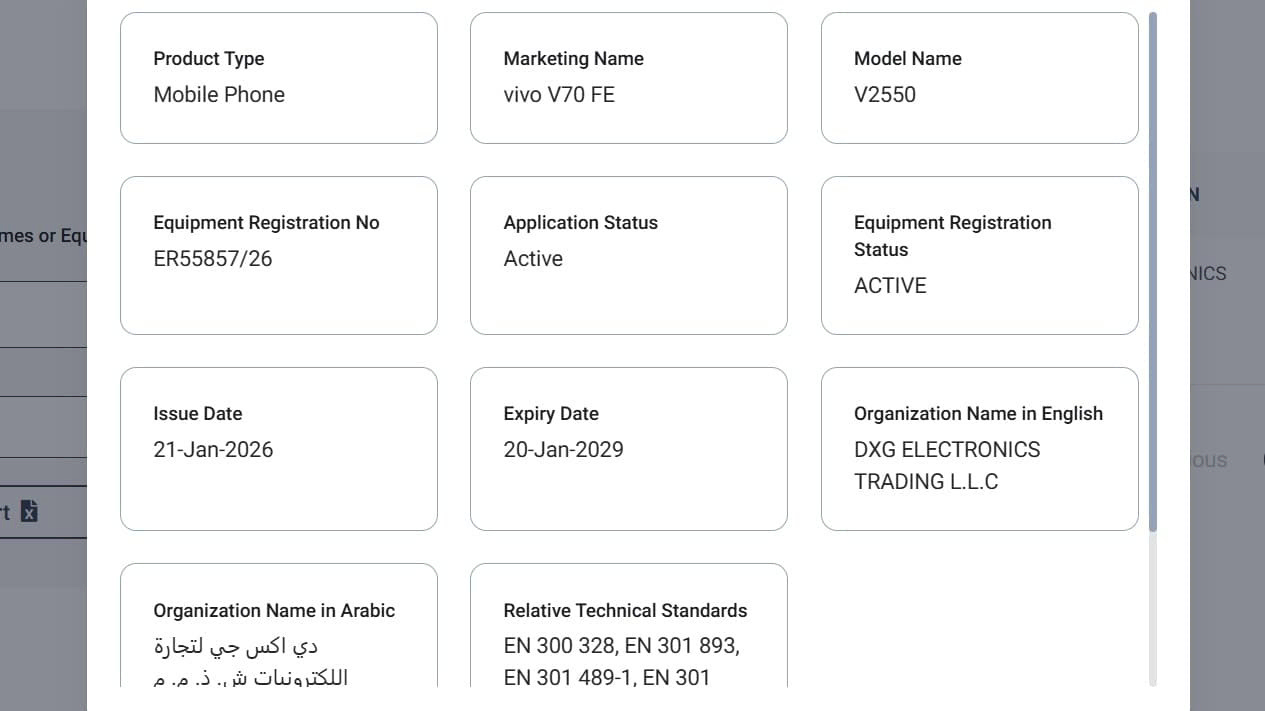 IT之家 1 月 23 日消息,科技媒体 Android Headline 昨日(1 月 22 日)发布博文,报道称 vivo V70 FE 手机(型号 V2550)额定电池容量为 6870mAh,支持 55W 有线充电,并具备 IP68 级防尘防水能力。