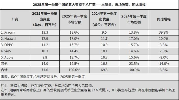 据IDC发布的2025年第一季度出货量,vivo以14.6%的市场份额位居第四,与去年国内市场第一的状况形成鲜明对比。