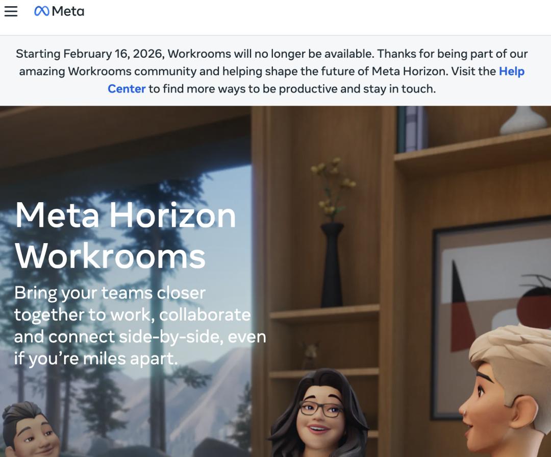2026年1月16日,Meta在帮助页面上低调写下另一行字:Horizon Workrooms将于2月16日关闭,数据删除。